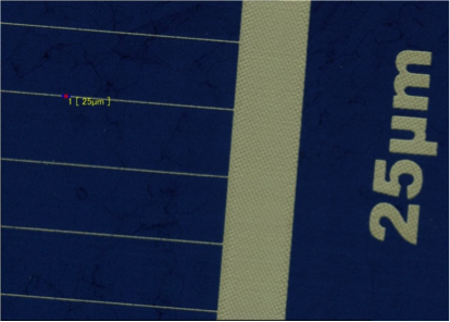 Warum Siebdruck: Es können bereits serienmäßig 20 µm und weniger feine Linien im Siebdruck realisiert werden, Feinstlinien-Druck von leitfähigen Layouts. Insbesondere im Solarzellendruck wird somit die Energieeffizienz durch hohe (20-25 µm) bzw. feine Leitfinger (20 - 50 µm) und durch die geringere Abdeckung des Siliziumwafers gesteigert.