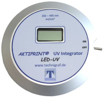 Die AKTIPRINT UV-Integratoren sind flache Messgeräte mit Anzeige der gemessenen UV-Strahlung. Diese eignen sich besonders als Durchlaufgerät zur regelmäßigen Leistungskontrolle der momentanen Bestrahlungsenergie (mJ/cm²) von UV-Trocknern, zum Ermitteln der erforderlichen UV-Strahlungsmenge für eine vollständige Aushärtung und somit zum Feststellen der benötigten Transportbandgeschwindigkeit. Die Integratoren gibt es in den folgenden unterschiedlichen Versionen: