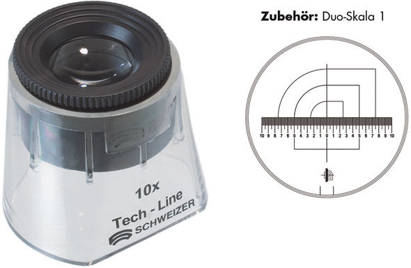 Ideal für alle Planprüfungen als einfache Standlupe oder in Kombination mit einer Duo-Skala als Messlupe. Die hochwertige Glasoptik sorgt für den perfekten Durchblick. Erfüllt durch das fokussierbare, aplanatische Linsensystem, höchste optische Ansprüche! Die kratzfesten Silikatglas-Linsen brillieren auch durch eine hohe Schärfentiefe und eine äußerst kontrastreiche Abbildung. Der Einsatz einer Duo-Messskala -durch einfaches Einklippen- ist unkompliziert und sitzt immer in der richtigen Position.